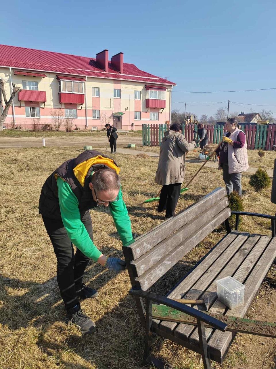 – Большая работа проходит в Вейнянском сельсовете – порядок наводим сразу на нескольких объектах. Идет благоустройство нашего детского лагеря «Колосок». Работники учреждений социальной сферы наводят порядок на прилегающих территориях. Большинство жителей агрогородков и деревень откликнулись – все активно наводят порядок на своих придомовых территориях. Работа развернута везде, и все для того, чтобы привести территорию района в порядок после зимы, – отметил председатель райисполкома.
