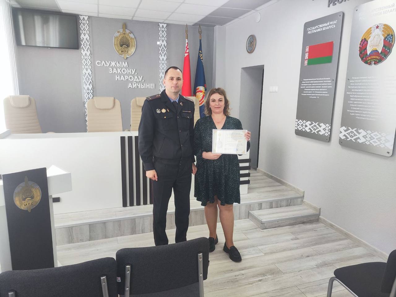Членам добровольных дружин ОАО «Полыковичи» и ООО «Птицефабрика «Романовичи» в торжественной обстановке были вручены Благодарности Могилевского РОВД за проявленную активность в охране общественного порядка.
