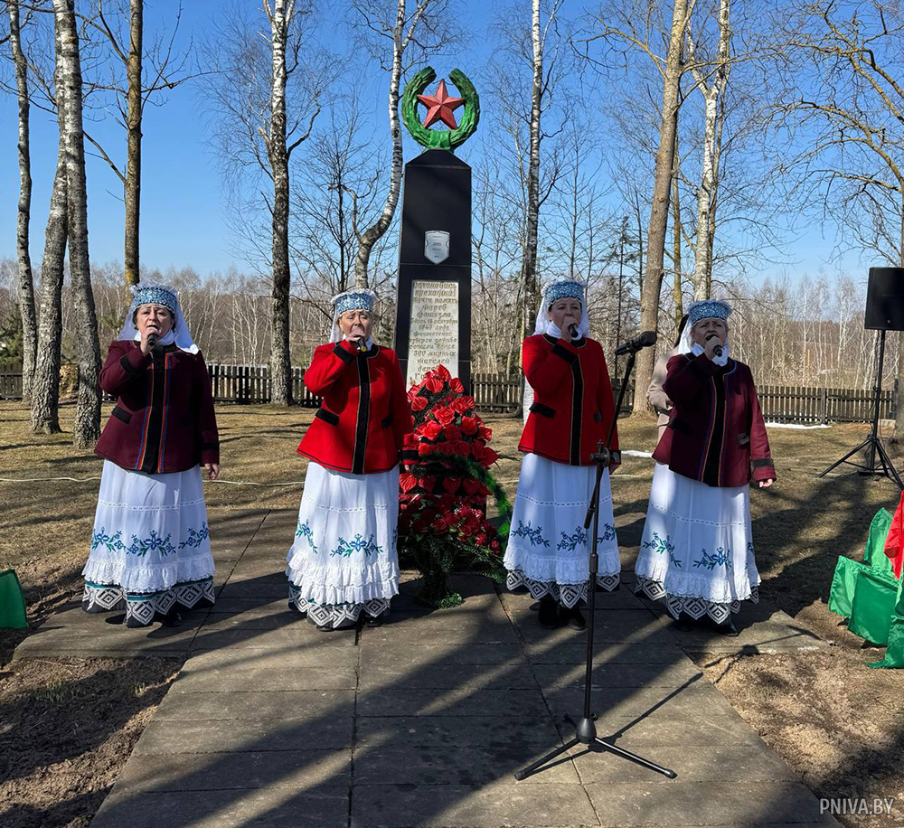 Завершилось мероприятие выступлением народного ансамбля «Славица» с композицией «Верните память». К подножию братской могилы легли цветы.