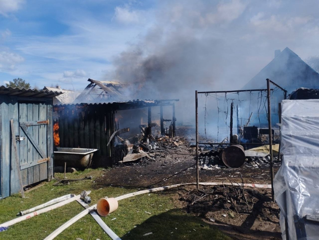 В результате пожара уничтожены два сарая и гараж, повреждена кровля дома и хозяйственная постройка. Никто не пострадал.