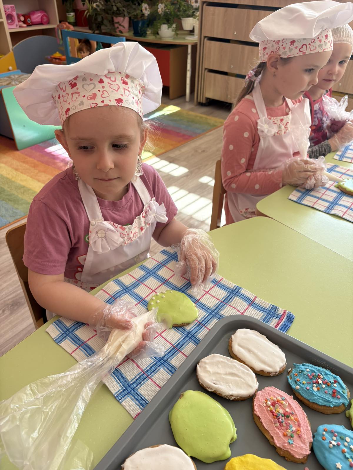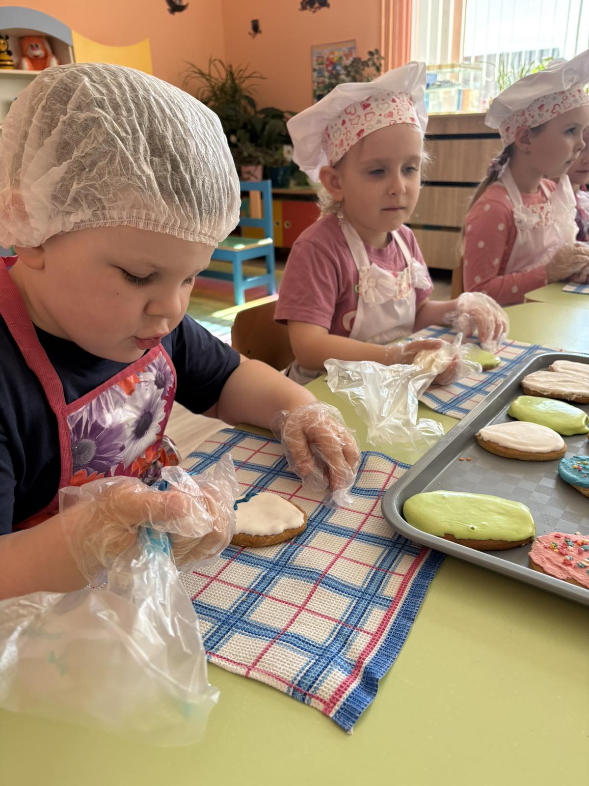 Самым ответственным этапом стала роспись. На столах – разноцветная глазурь, кондитерские бусины и присыпки. Каждый пряник стал уникальным: на одном расцвели весенние цветы, на другом – аккуратные «пушистики» вербы. Дети старались изо всех сил, ведь они знали, что эти сладости помогут тем, кому сейчас трудно.