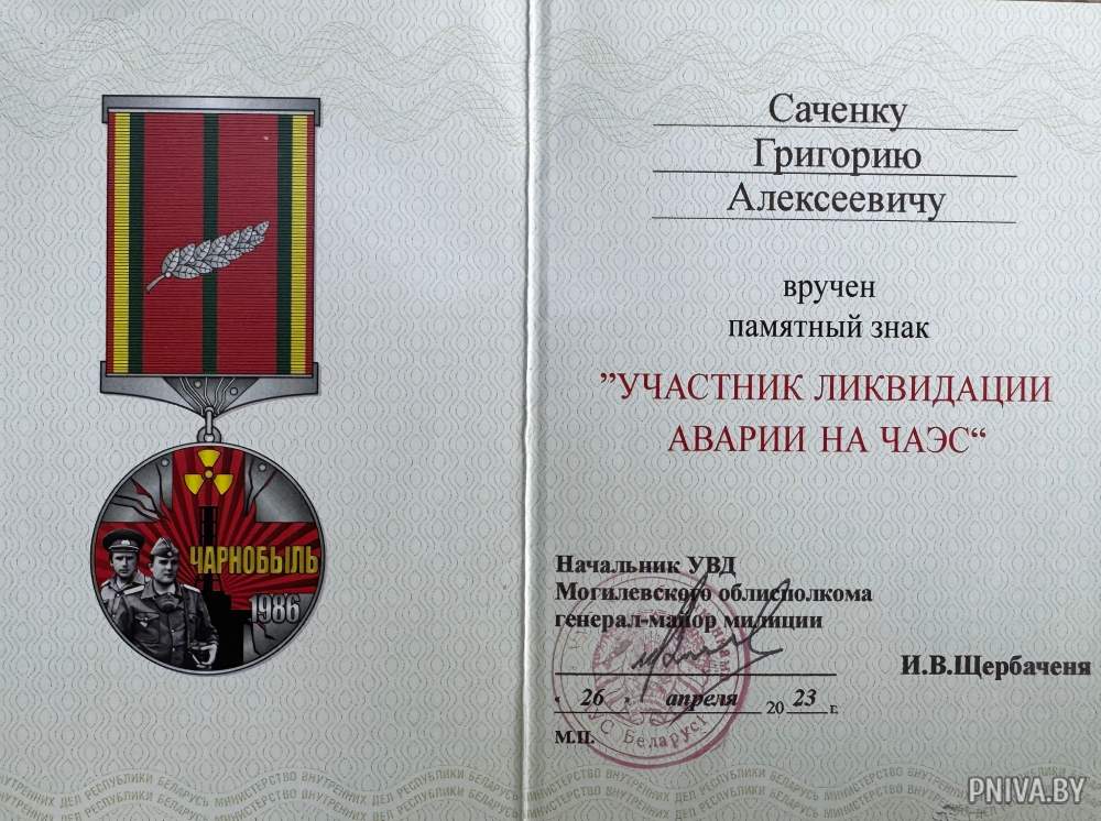 В Могилеве Григорий Саченок продолжил службу инспектором по делам несовершеннолетних. Но в 88-м году был вынужден уйти из милиции по состоянию здоровья – Чернобыль навсегда отпечатался на здоровье.