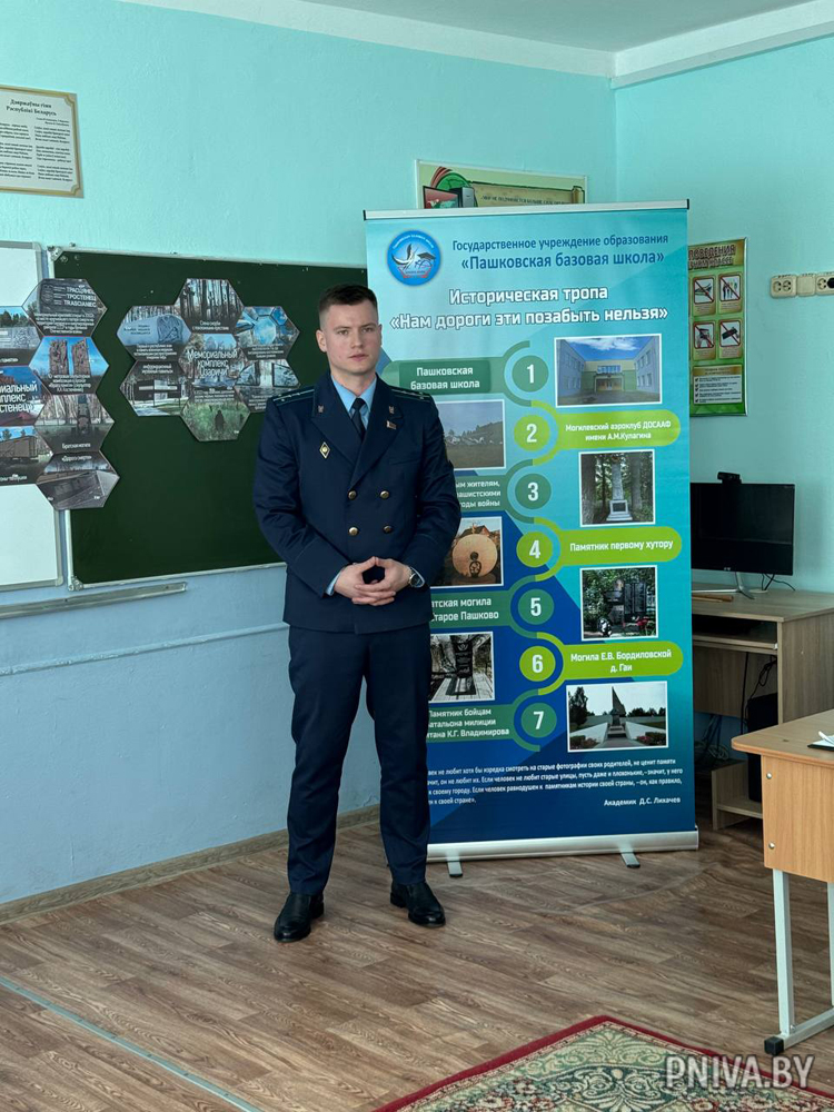 В Пашковской базовой школе прошло торжественное мероприятие, приуроченное к Международному дню освобождения узников фашистских концлагерей. Встреча, ставшая глубоким уроком истории и патриотизма, собрала вместе учащихся, педагогов и почетного гостя – помощника прокурора Могилевского района Владислава Буряко.