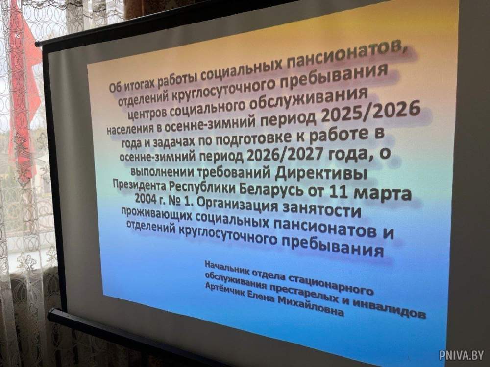 Председатель комитета по труду, занятости и социальной защите Могилевского облисполкома Мария Шапневская высоко оценила и работу Могилевского социального пансионата «Жемчужина» в целом, и организацию проводимого мероприятия. А затем был рассмотрен ряд важных вопросов, спектр которых – от укомплектованности специалистами социальных пансионатов области и работы профильных отделений до проведения культурно-массовых мероприятий и грамотного использования денежных средств.